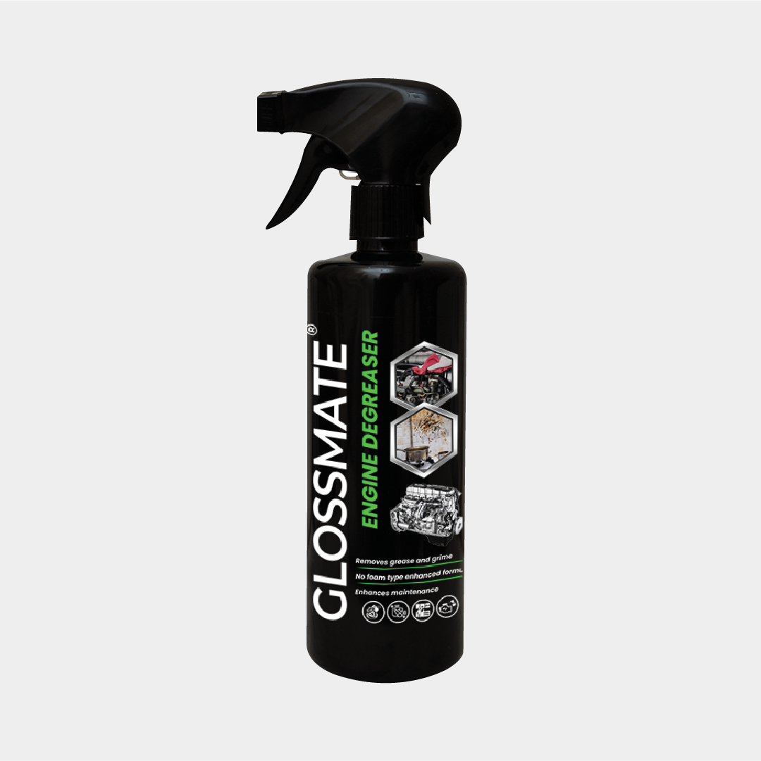 Glossmate Engine Degreaser is a powerful but safe cleaner designed to remove grease and oil from engines, interior oil stains, and door jambs.